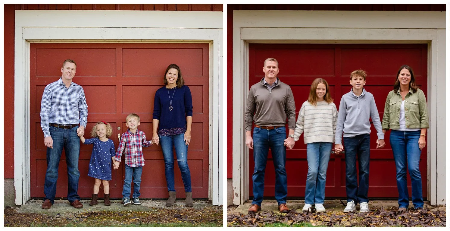 Back in 2017, I took this family’s photos for the first time. One of my favorite shots from that day was them holding hands in front of the big red barn door, with the kids in the middle.